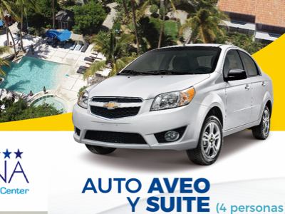 Auto con kilometraje libre y seguro por 24hrs y suite para 4 personas.