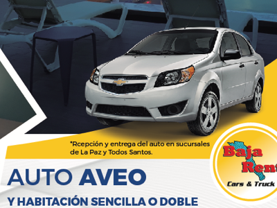 Auto con kilometraje libre y seguro por 24hrs y habitación sencilla o doble para 2 adultos y 2 menores