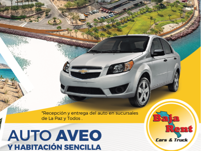 Auto con kilometraje libre y seguro por 24hrs y habitación sencilla o doble para 2 adultos y 2 menores